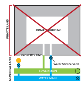 The Town of Blackfalds does not locate water, sewer or storm lines on private property. Service lines on private property are owned by and the responsibility of the landowner. If a landowner wishes to locate service lines on private property, we recommend that you hire a qualified contractor to perform the locate.